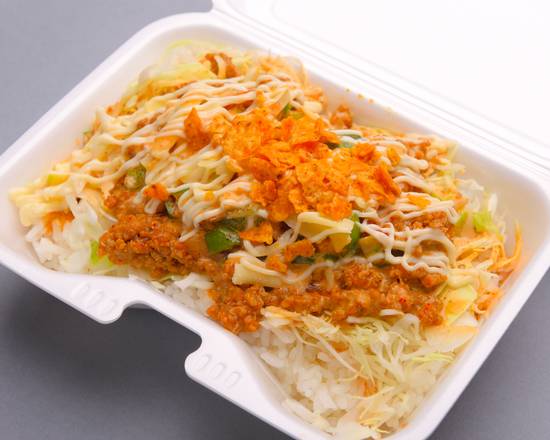 ご飯200g/キャベツ・レタスなどのミックス野菜/タコミート/サルサソース/トマト/チーズ/マヨネーズ/タコスチップ/