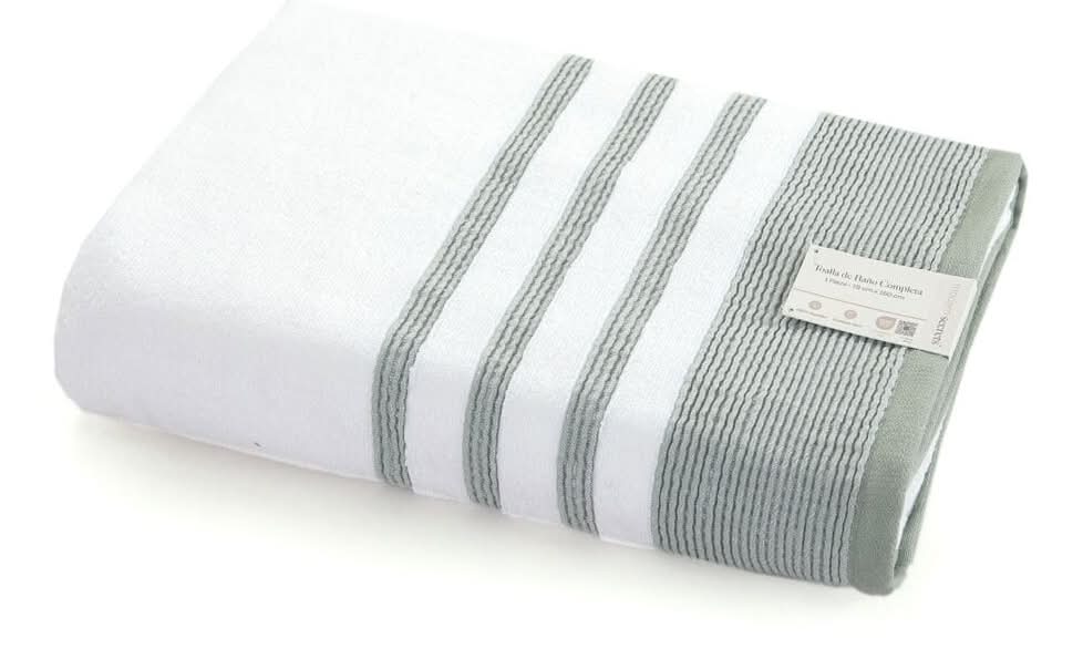 Modern Secrets · Toalla de baño de algodón stripe, 78cm x 1.5m, salvia