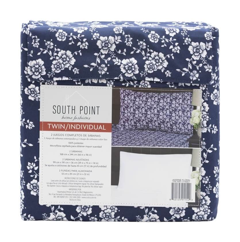 SOUTH POINT · Set de juego completo de sabanas liso, Individual , azul-blanco (6 un)