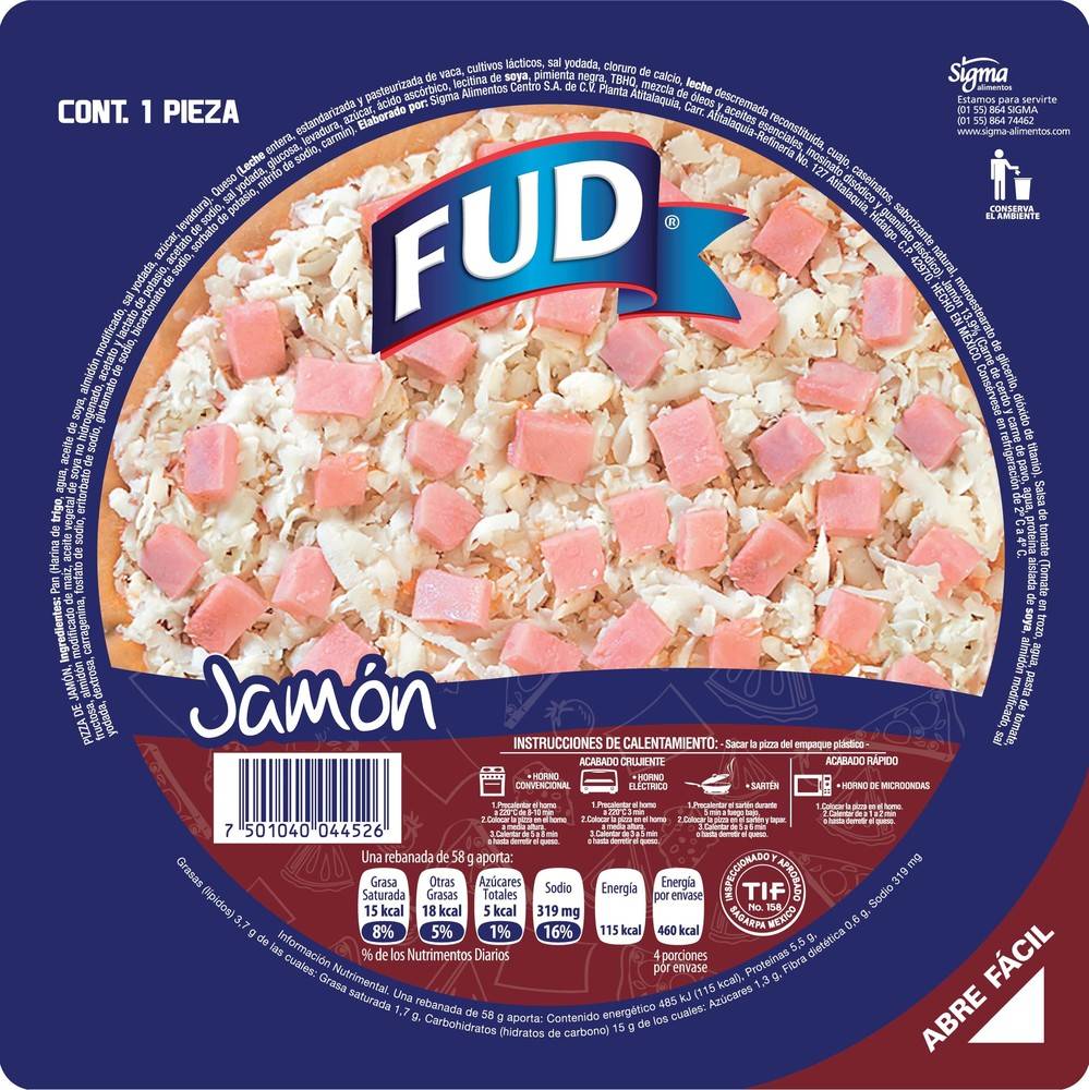 FUD · Pizza de jamón individual (220 g)