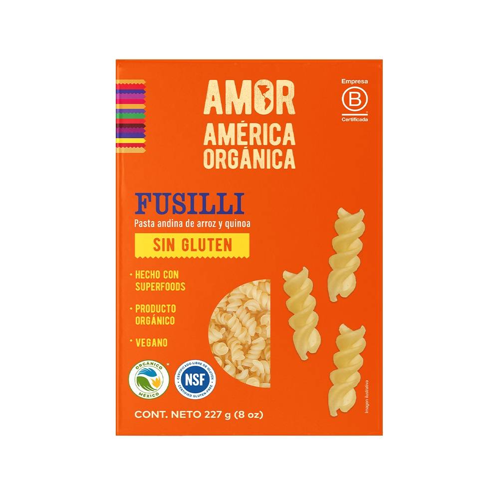 Amor América Orgánica · Pasta fusilli andina sin gluten, arroz-quinoa (907 g)