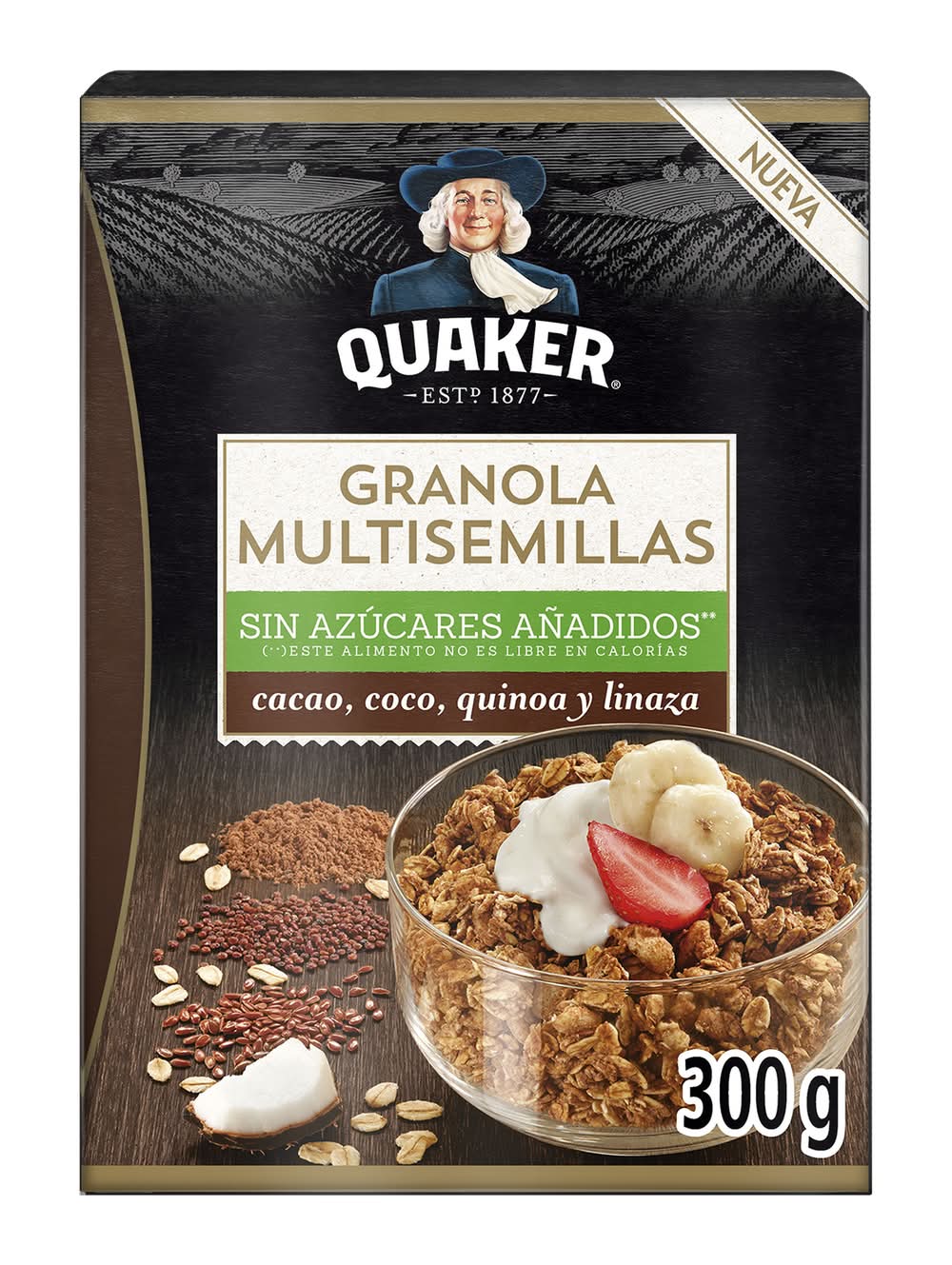Quaker · Granola multisemillas con cacao, coco, quinoa y linaza sin azúcar (300 g)