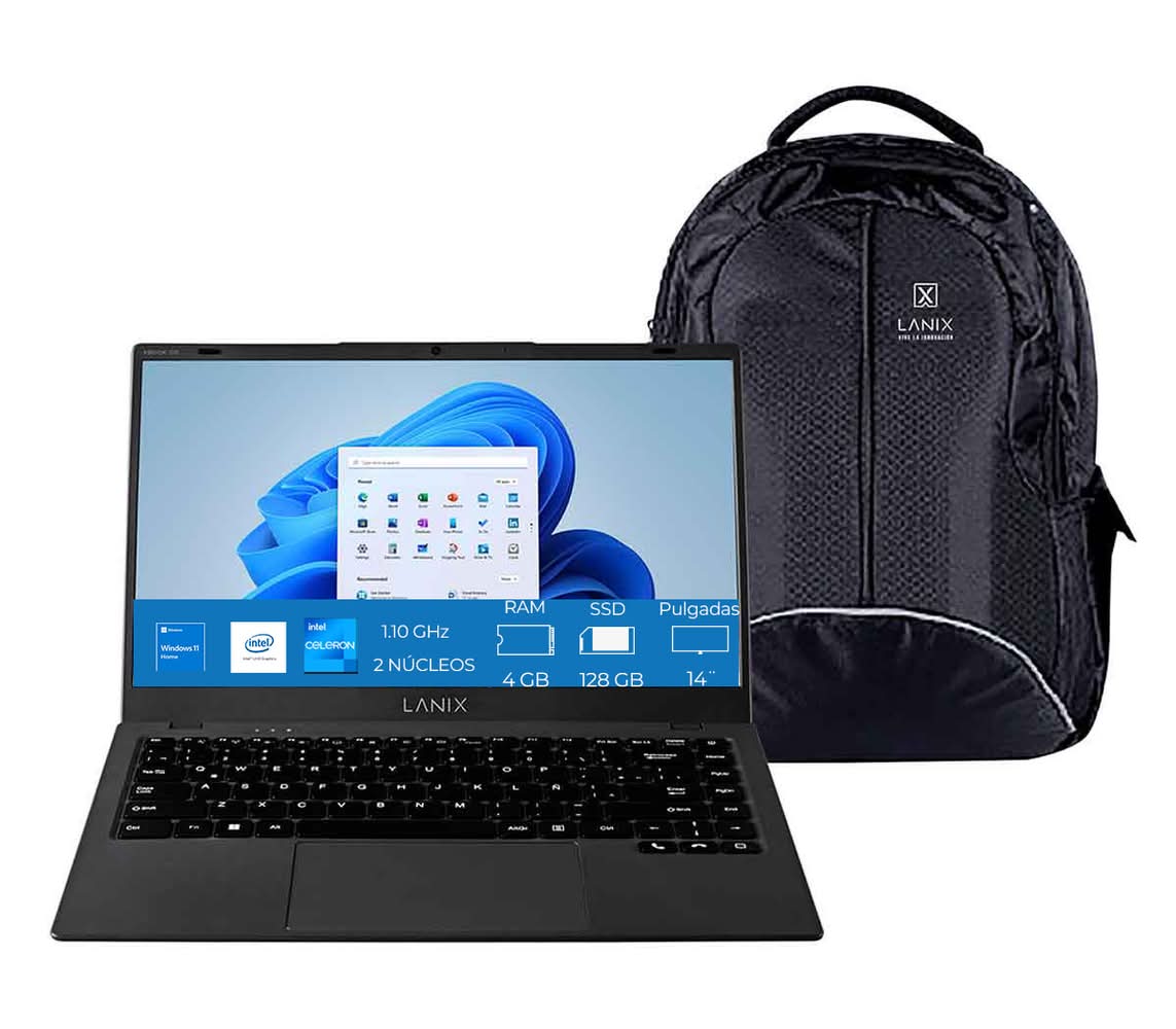 Lanix · Laptop xbook go intel celeron 4 gb 128 gb + mochila, 14-inch (2 un)