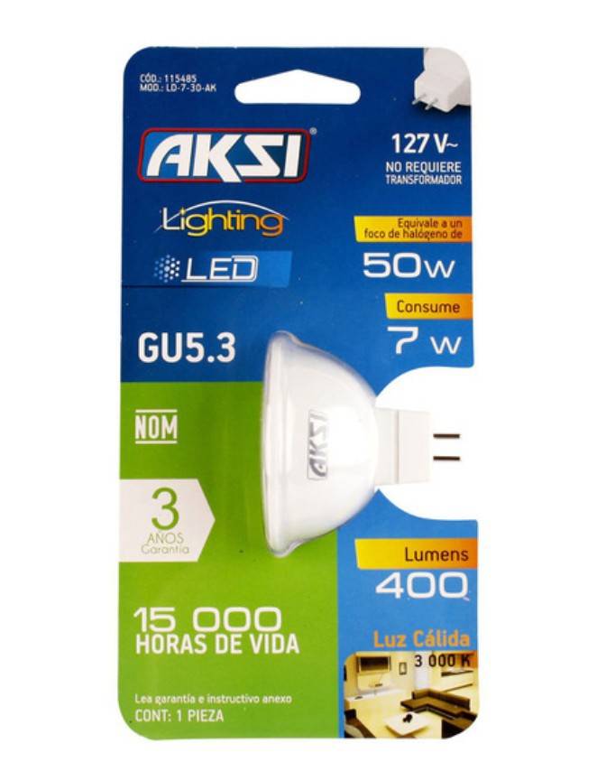 AKSI · Foco led mr16 127v / gu 5.3 luz cálida 7w
