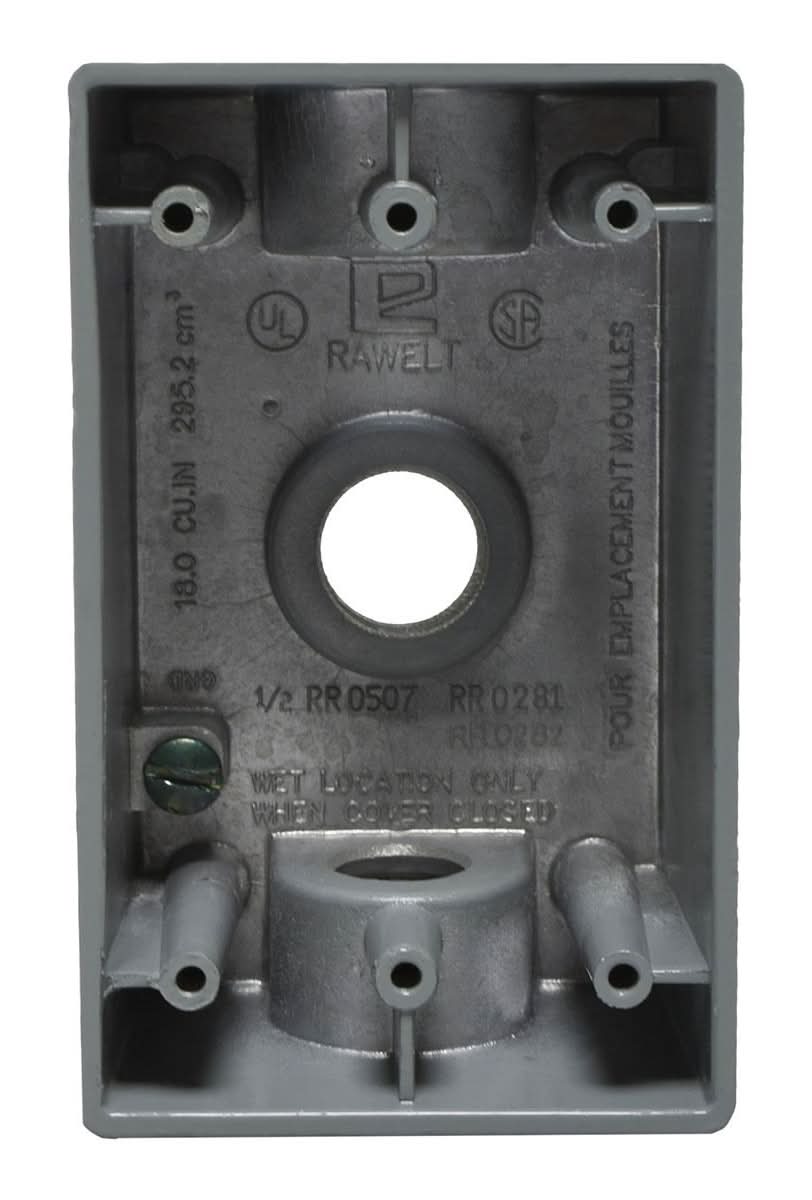 RAWELT · Caja rectangular con tres bocas de 1/2 in