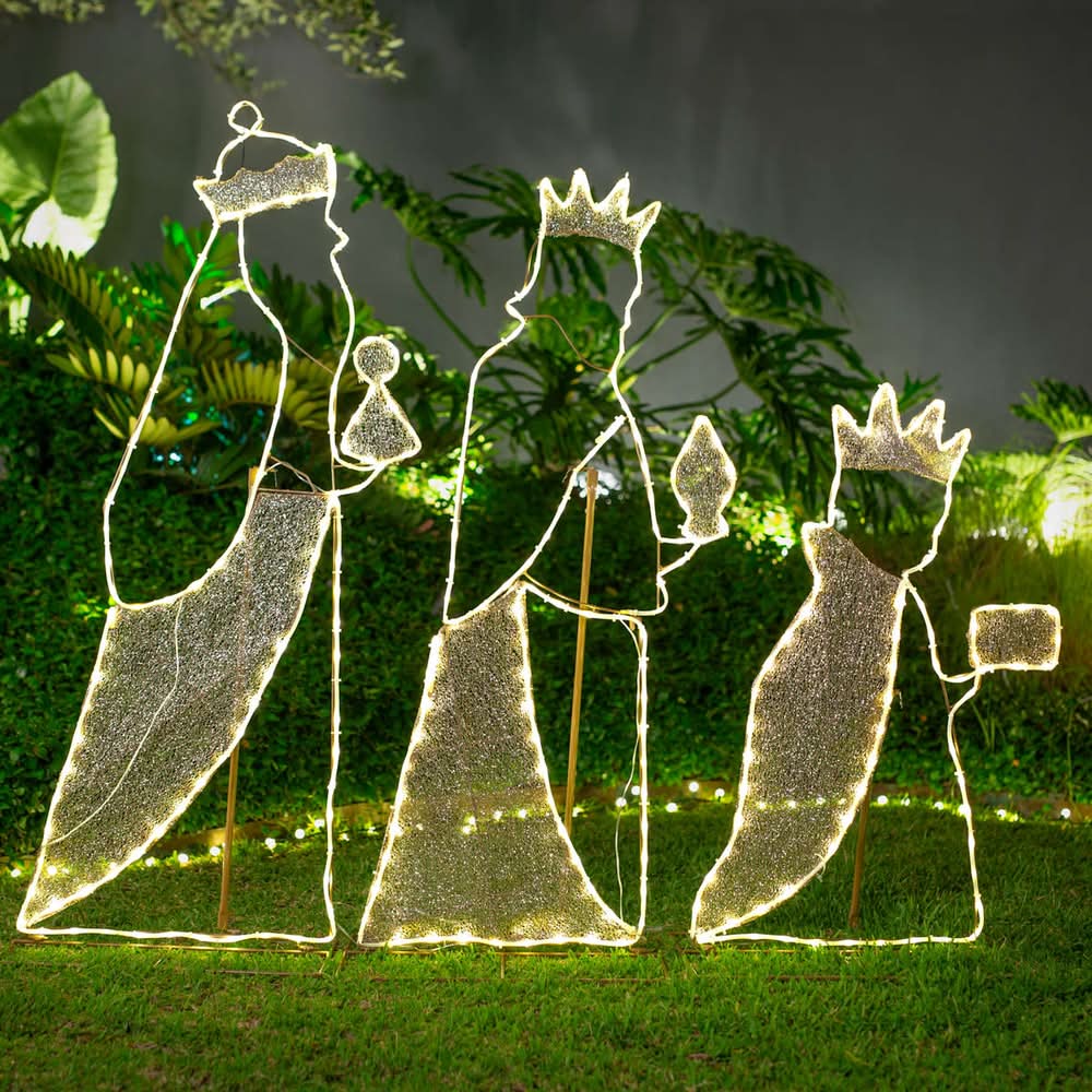 Home Accents Holiday · Figura decorativa navideña de reyes magos con luces led cálidas, 134x59x37.5 cm