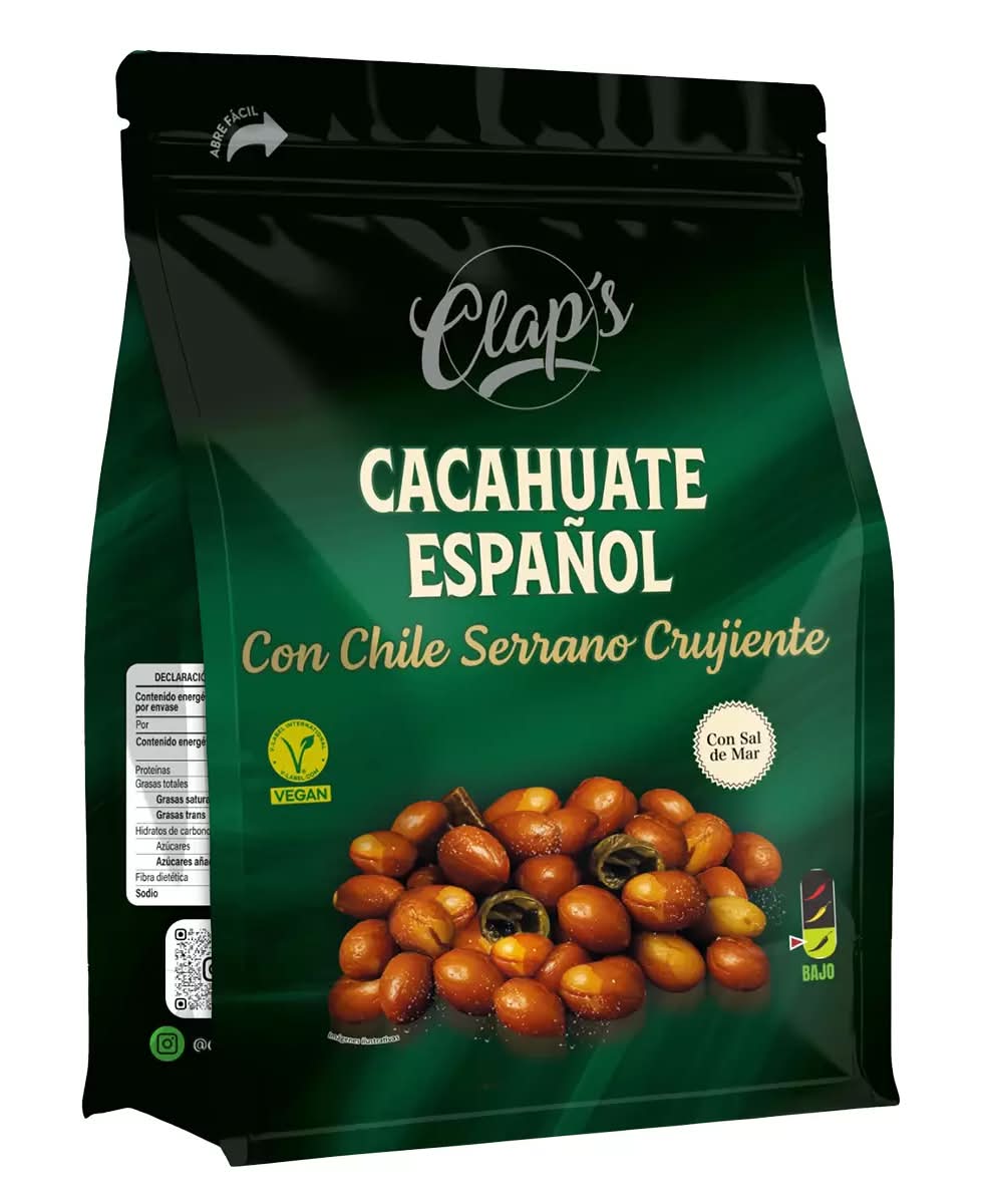 Clap's · Cacahuate vegano crujiente con sal de mar, español-chile serrano (850 g)