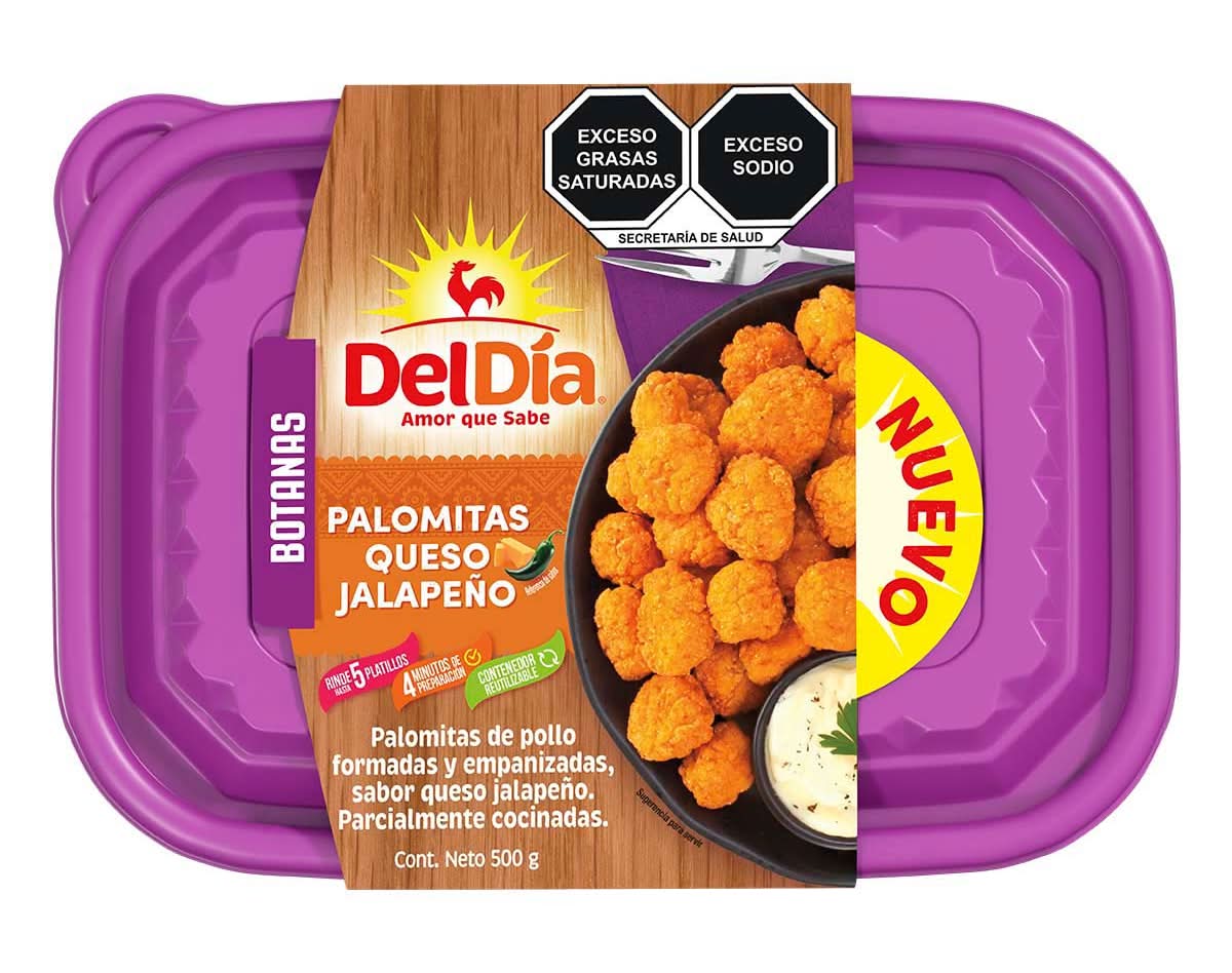 Del Día · Palomitas de pollo formadas empanizadas y parcialmente cocinadas, queso jalapeño (500 g)