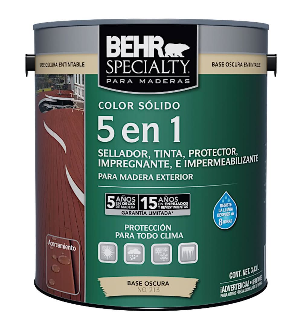 Behr · Specialty cinco en uno para madera exterior base oscura (3,43 L)