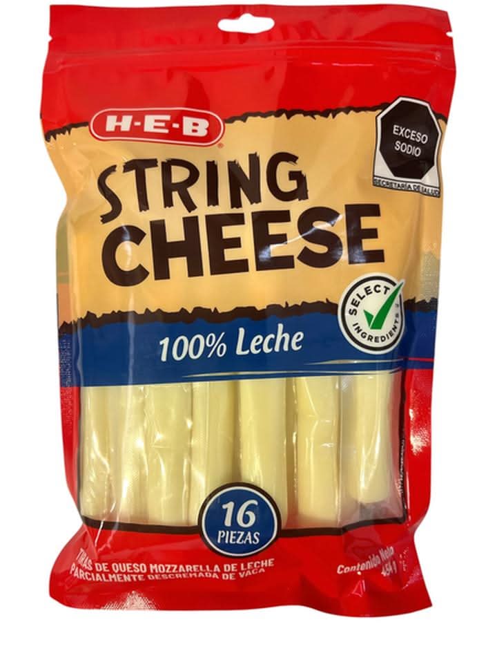 H-E-B Organics · String cheese tiras de queso mozarella (16 un)