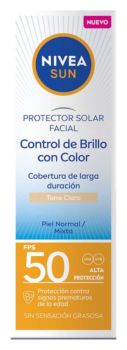 Nivea · Sun protector solar facial control de brillo con color fps50, tono claro (50 ml)