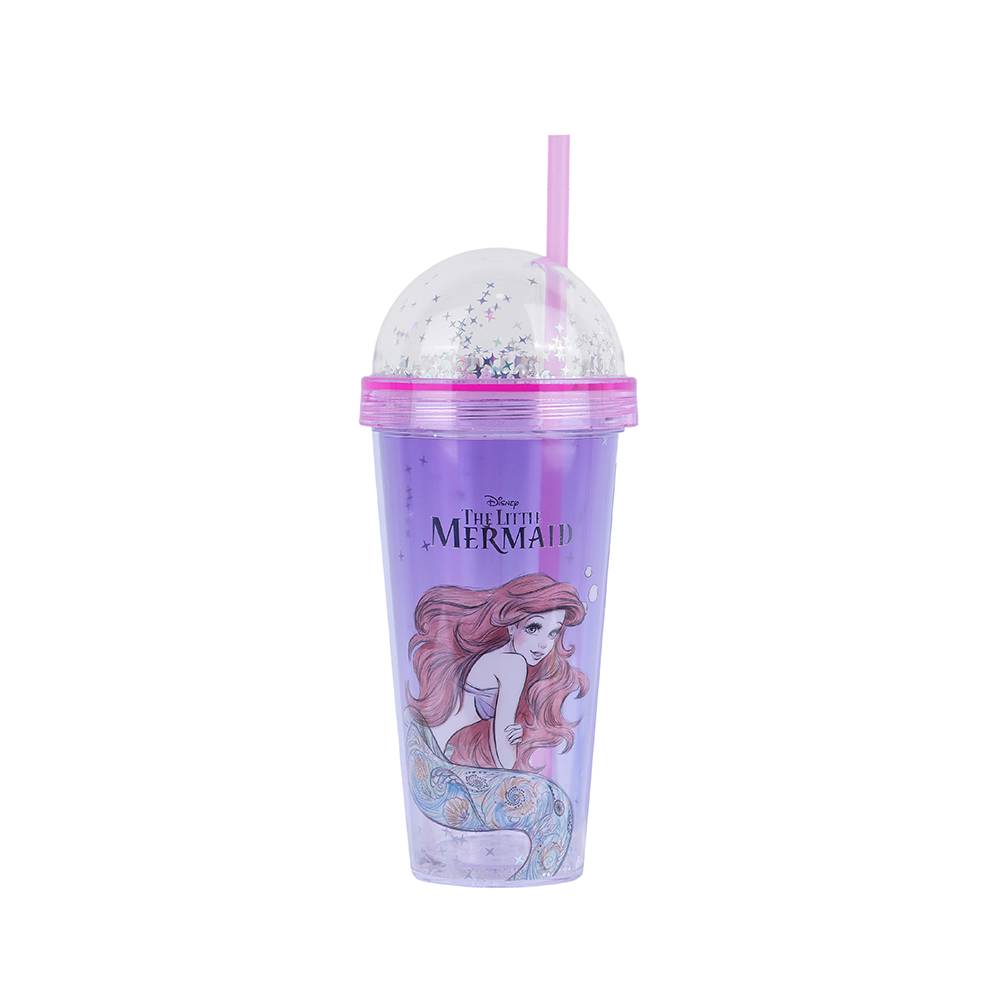 Miniso · Vaso de plástico con tapa y popote doble capa la sirenita disney