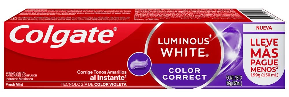 Colgate · Luminous white pasta dental blanqueadora color correct, menta fresca (199 g)