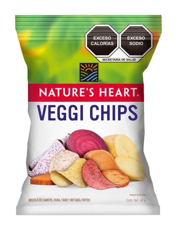 Nature's Heart · Veggi chips mezcla de camote, papa, taro y betabel sazonadas, limón-sal (40 g)