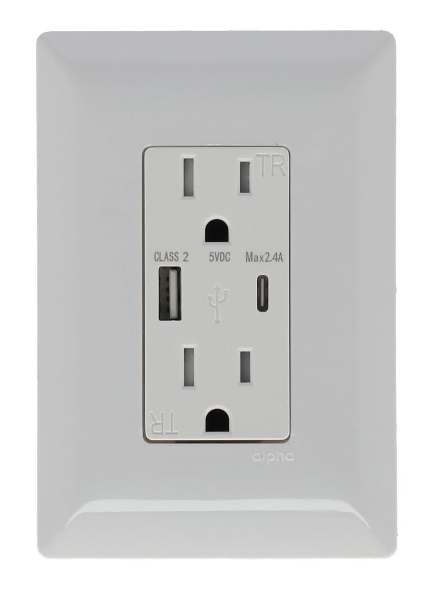 Estévez · Alpha contacto dúplex con cargador usb tipo a y c, plata