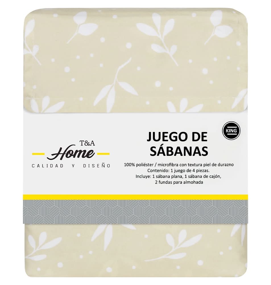 T&A Home · Juego de sábanas, King, beige (4 un)