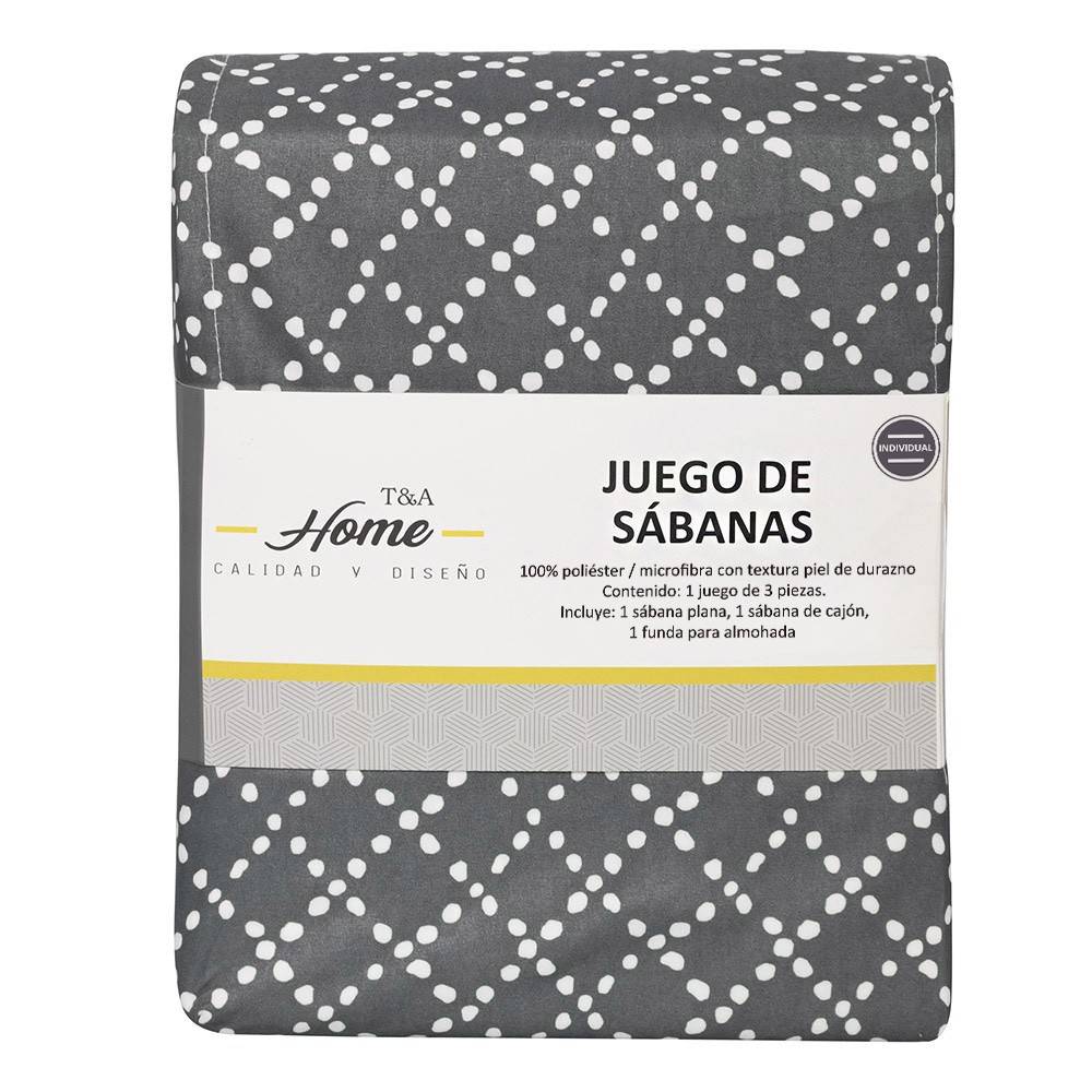 T&A Home · Sábanas matrimonial diseño puntos gris