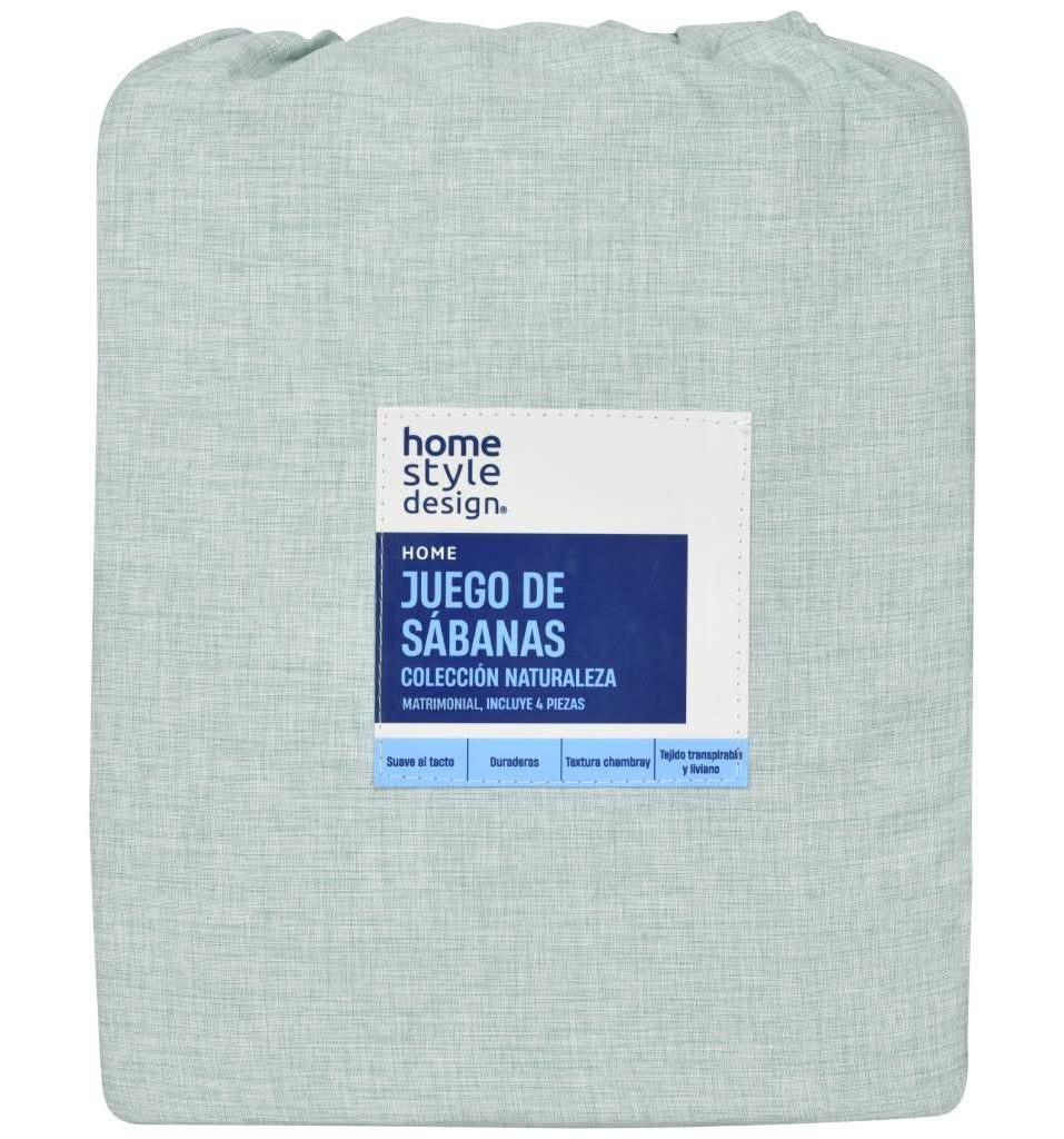Casaideas · Set de sábanas matrimoniales, 210 x 250 cm, celeste (4 un)