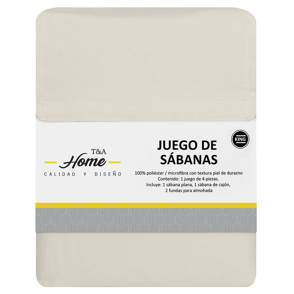 T&A Home · Juego de sábanas lisas, King Size, beige (4 un)