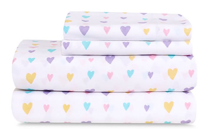 Juli & Pete · Set de sábanas de algodón cepillado con diseño de corazones, Matrimonial (4 un)