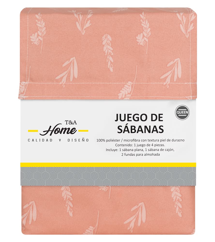 T&A Home · Juego de sábanas, Matrimonial - Queen, salmón