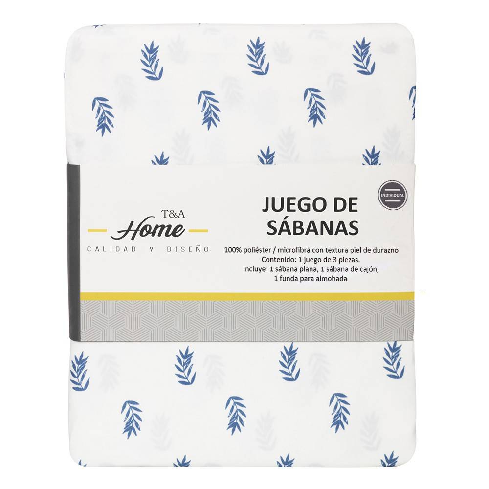T&A Home · Sábanas individual diseño hojas azules