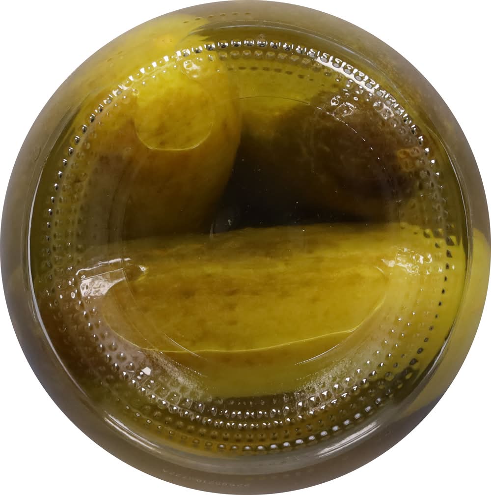 Ingredients: Cucumbers, Water, Vinegar, Salt, Calcium Chloride (Firming Agent), Sodium Benzoate (Preservative), Natural Flavors, and Turmeric (for Color)