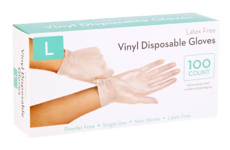 Latex Free Vinyl Disposable Gloves, Large (100 ct)