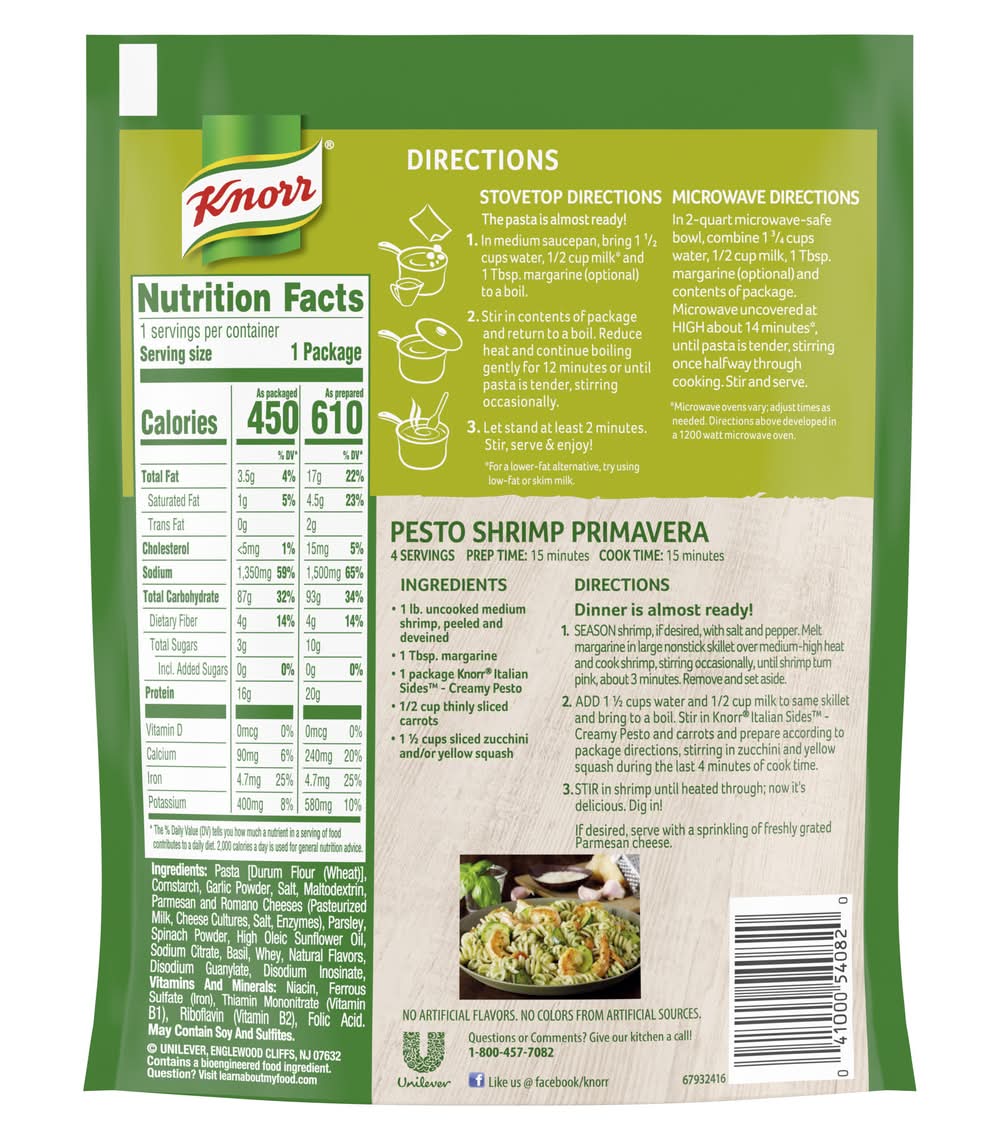 Knorr Pasta Sides Creamy Pesto, 4.1 oz Unilever,