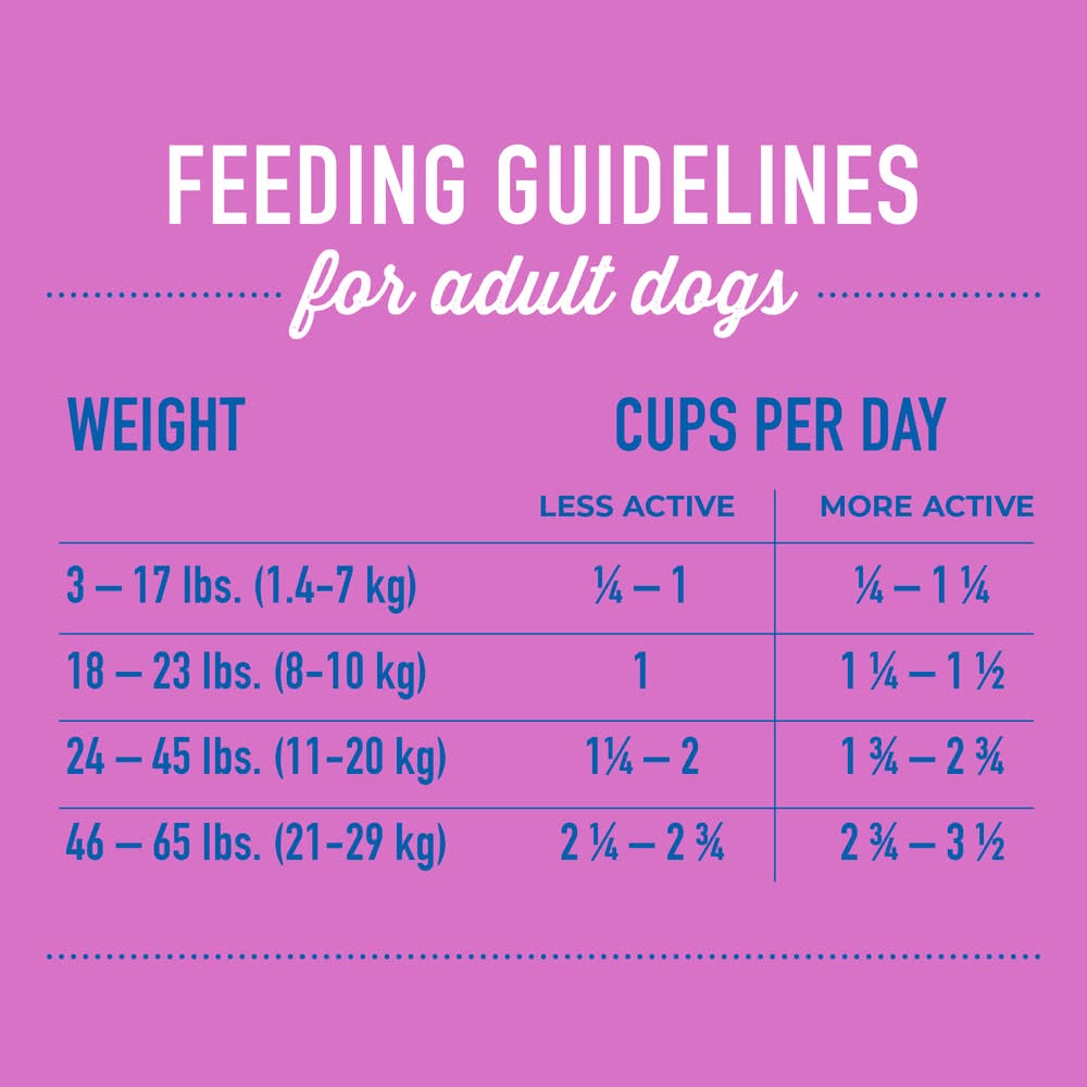 Directions for use: Feeding amounts may vary with lifestyle, life stage and activity level. Always consult your veterinarian if you are unsure how much to feed your dog. Make sure your dog always has access to fresh, clean water. Storage recommendation: Store in a cool, dry place
