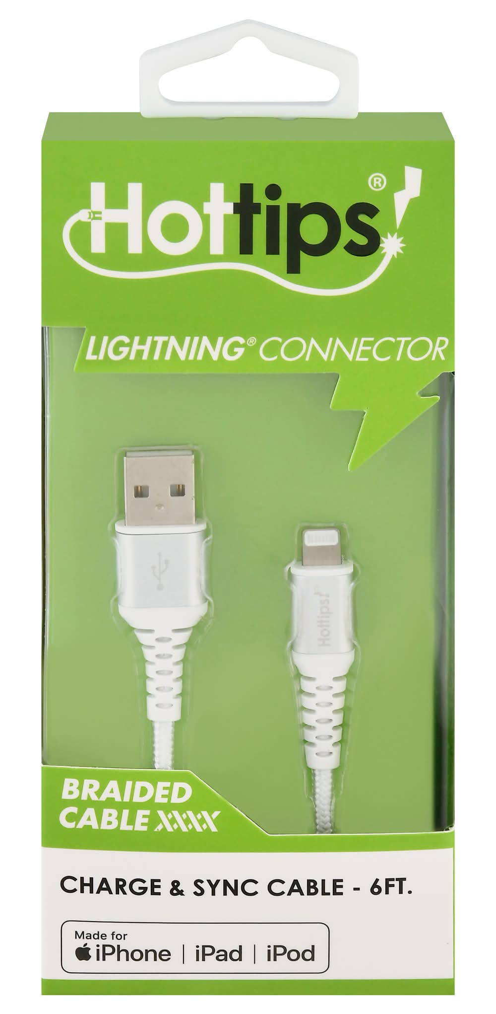 Charge and Sync Cable, Lightning Connector, Braided Cable, 6 Feet Hottips,
