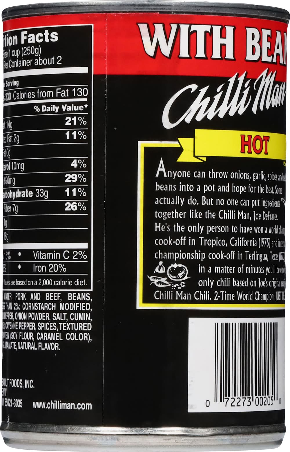 View a store’s business hours to see if it will be open late or around the time you’d like to order Chilli Man Hot Chili With Beans.
