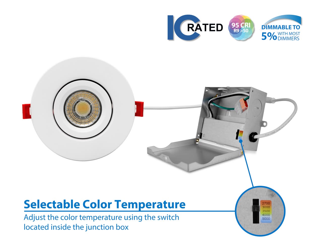 NICOR Lighting Selectable Canless Adjustable Gimbal Led Recessed Downlight, 4-inch, White