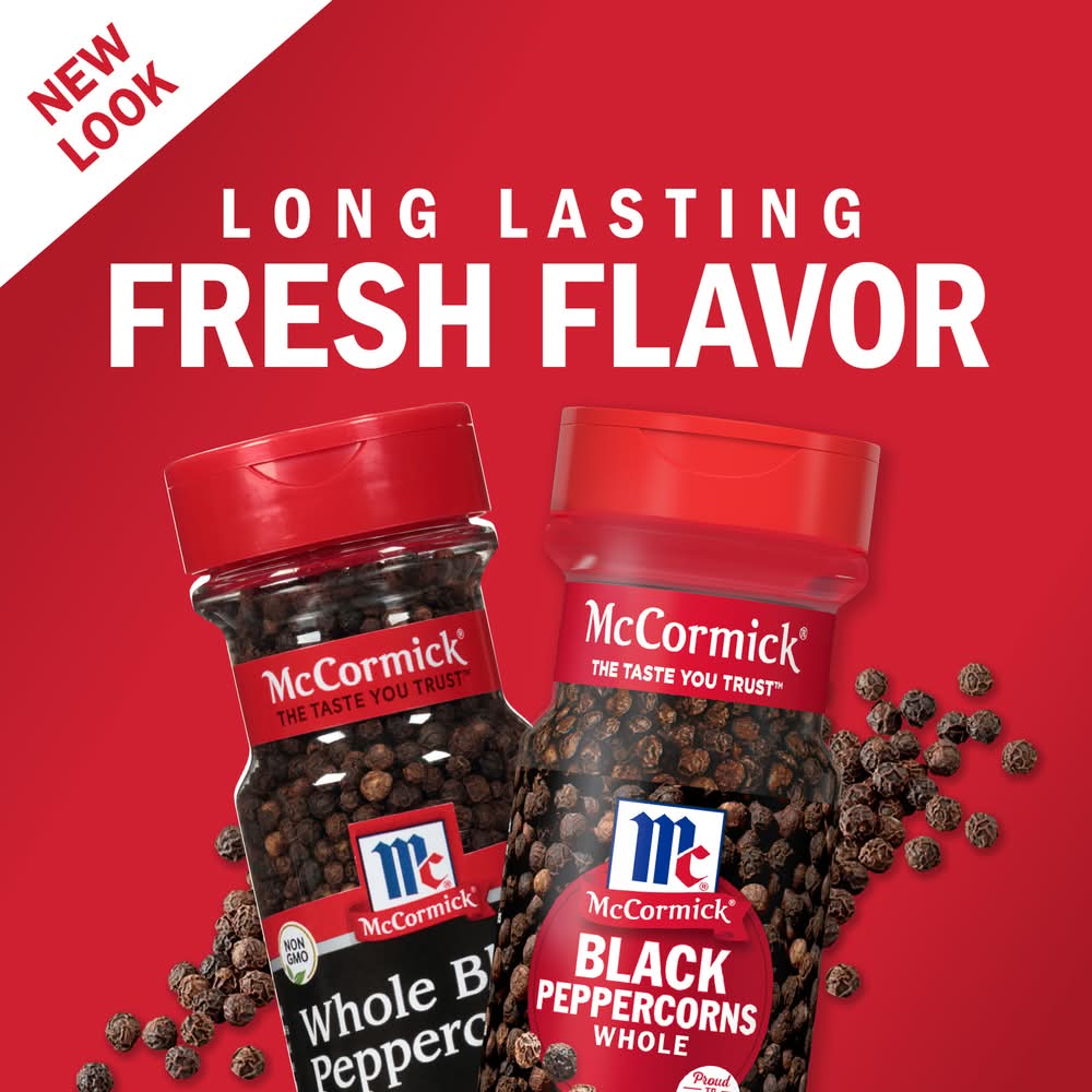 At McCormick, we hand-harvest our black peppercorns to ensure that the larger berries are picked for the boldest flavor. For freshly ground pepper, fill your grinder with our peppercorns. • Mccormick, Hunt Valley,MD,21031-1100 • Packaging: Reusable