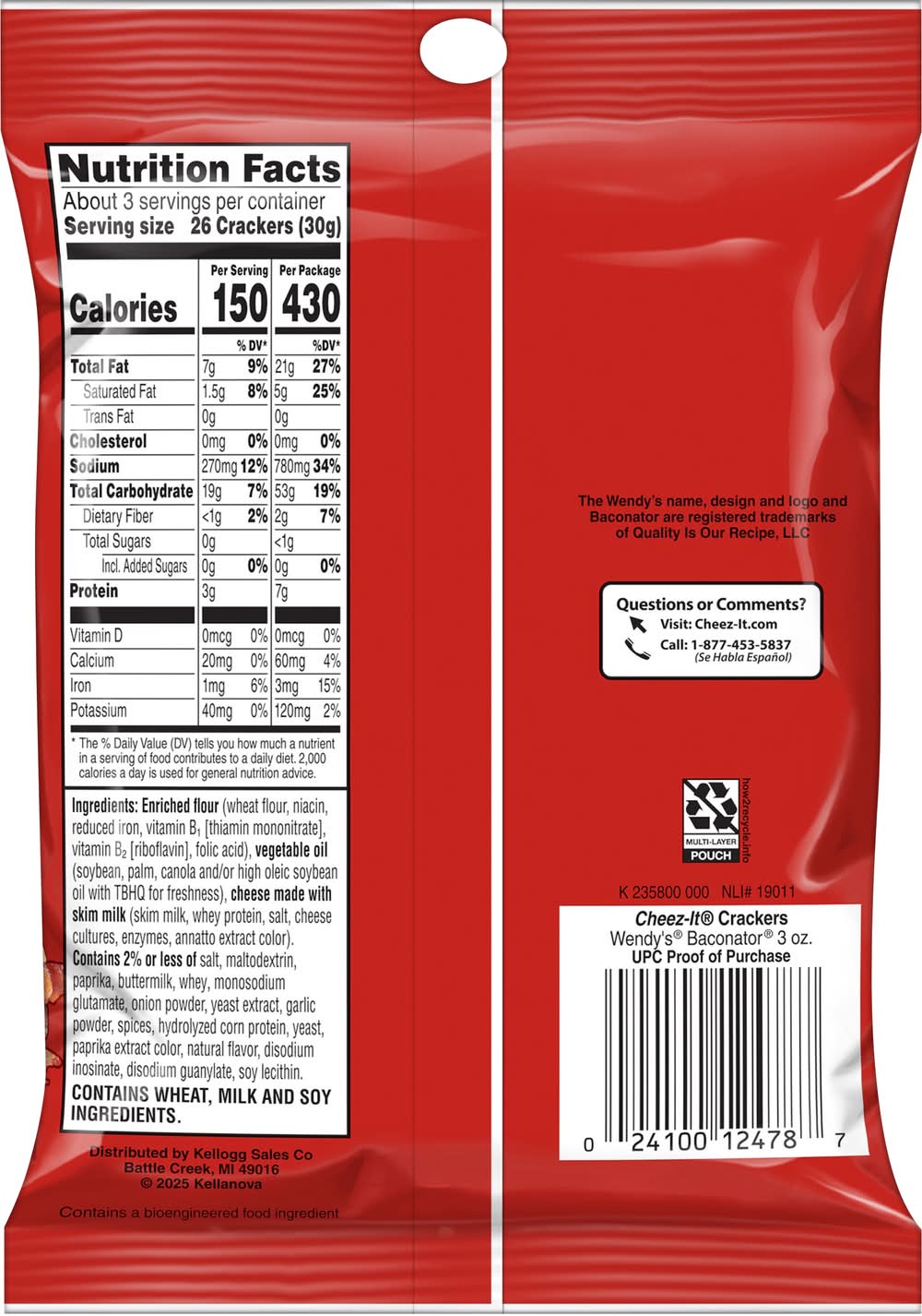 Cheez-It Baked Snack Crackers, Wendy's Baconator (3 oz)