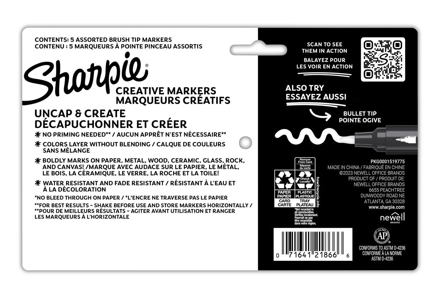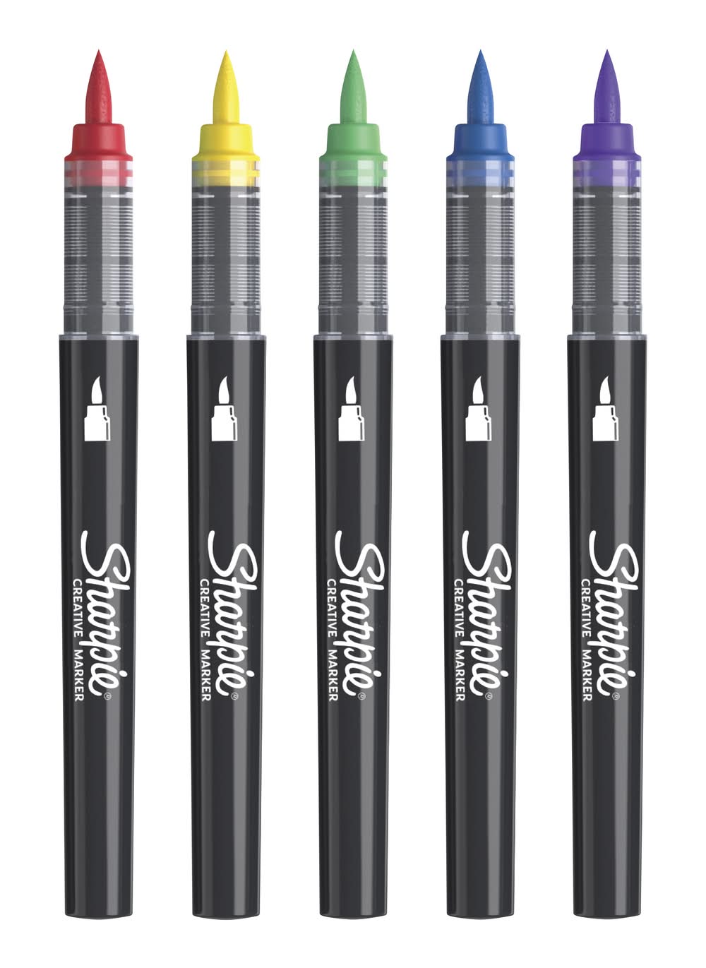 Bring your artistic vision to life with Sharpie Creative Markers! These acrylic markers feature stunning paint-like ink that glides across the page with the control of a marker. The water-based ink won’t bleed through paper, so your work stays clean. The bright colour markers create vibrant marks on light and dark surfaces and boldly mark on paper, metal, wood, ceramic, glass, rock, and canvas. The colours beautifully layer to add dimension to your work. What’s more, there’s no need to prime these brush tip markers—simply uncap and go!
