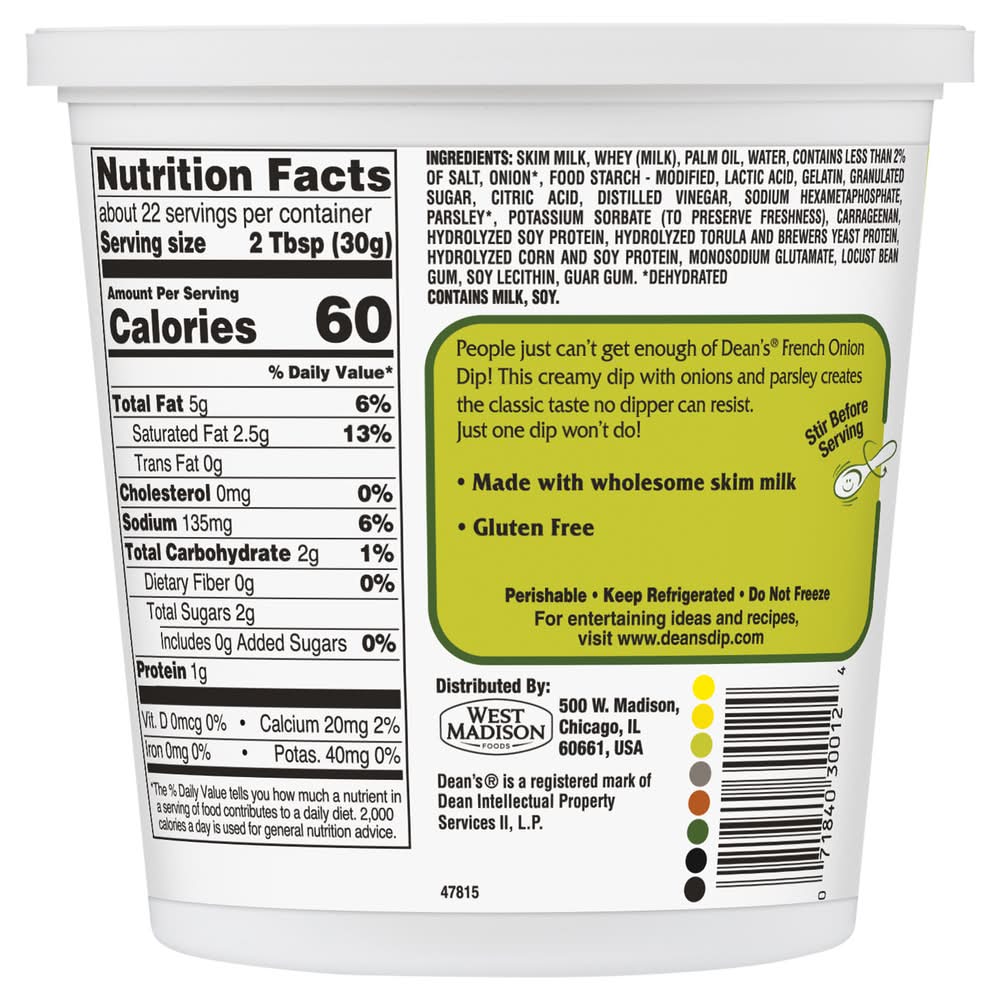 Your Dean's French Onion Dip delivery options may vary depending on where you are in a city. Enter your address to browse Dean's French Onion Dip delivery options near you.