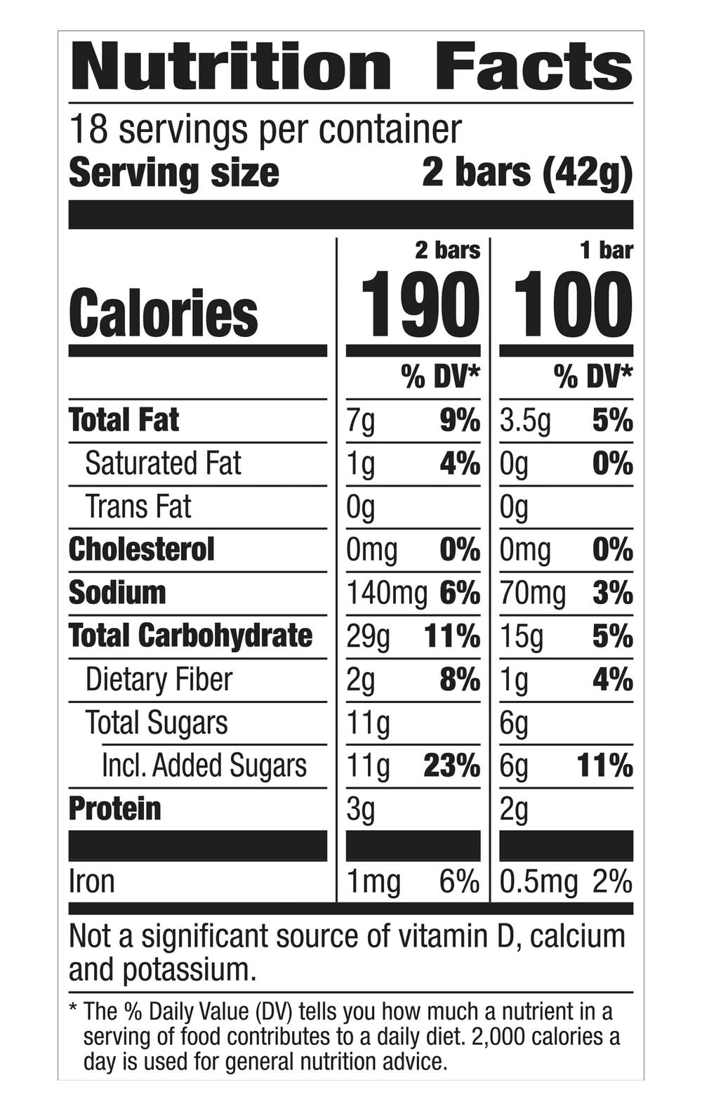 Ingredients: Whole Grain Oats, Sugar, Canola and/or Sunflower Oil, Rice Flour, Honey, Salt, Brown Sugar Syrup, Baking Soda, Soy Lecithin, Natural Flavor Contains: Oat, Soybeans, Peanuts, Tree Nuts, Almonds, Tree Nuts, Pecans