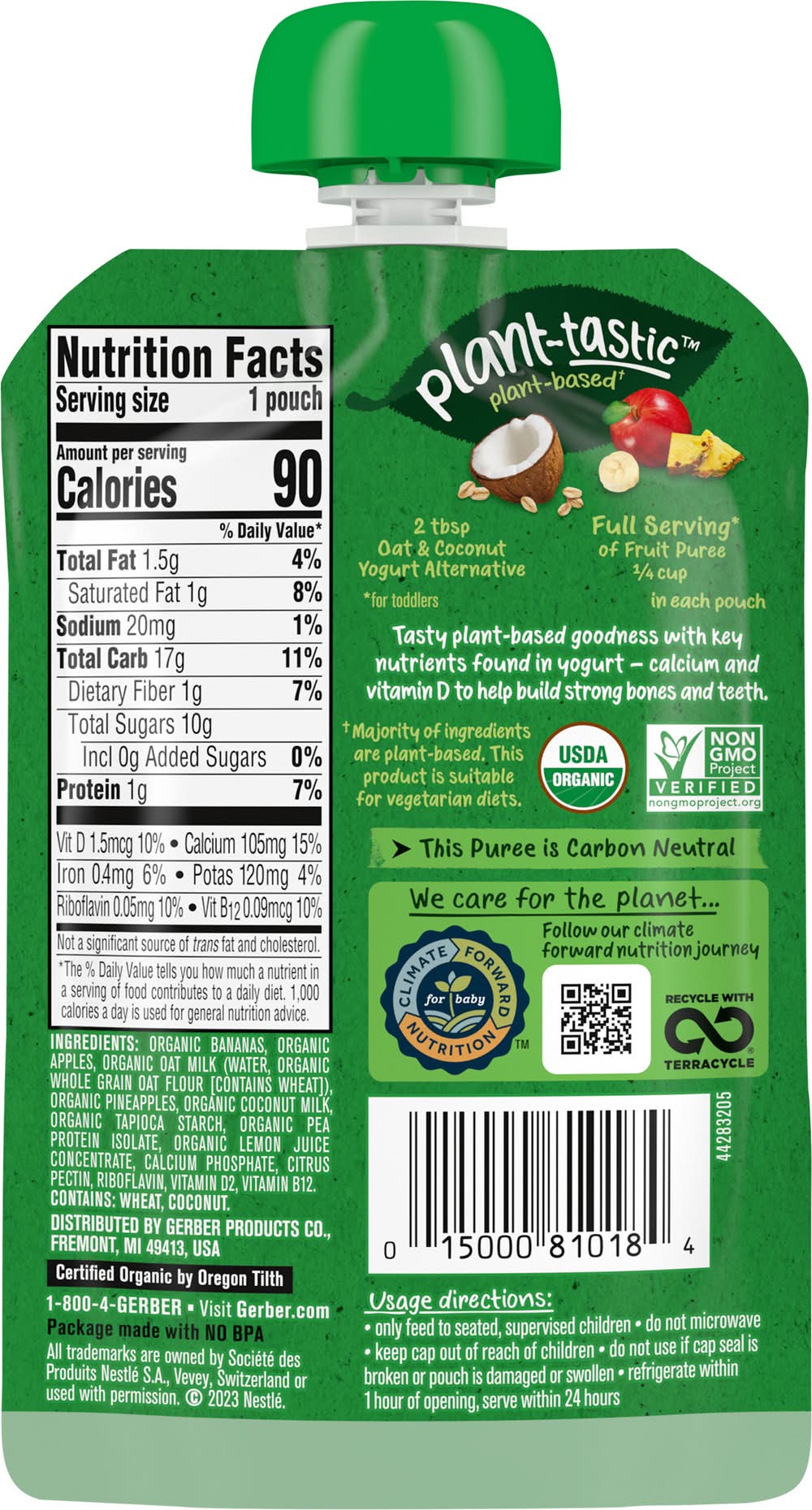 Fruit & Yogurt Alternative, with Oat & Coconut Milk, Sunshine Pineapple Fusion, Toddler (12+ Months) Gerber Products Co.,