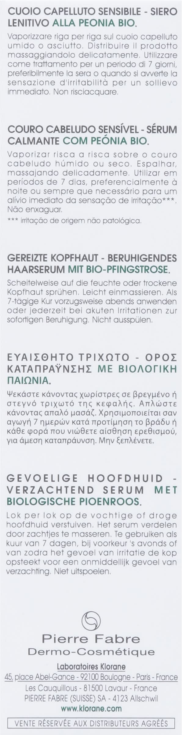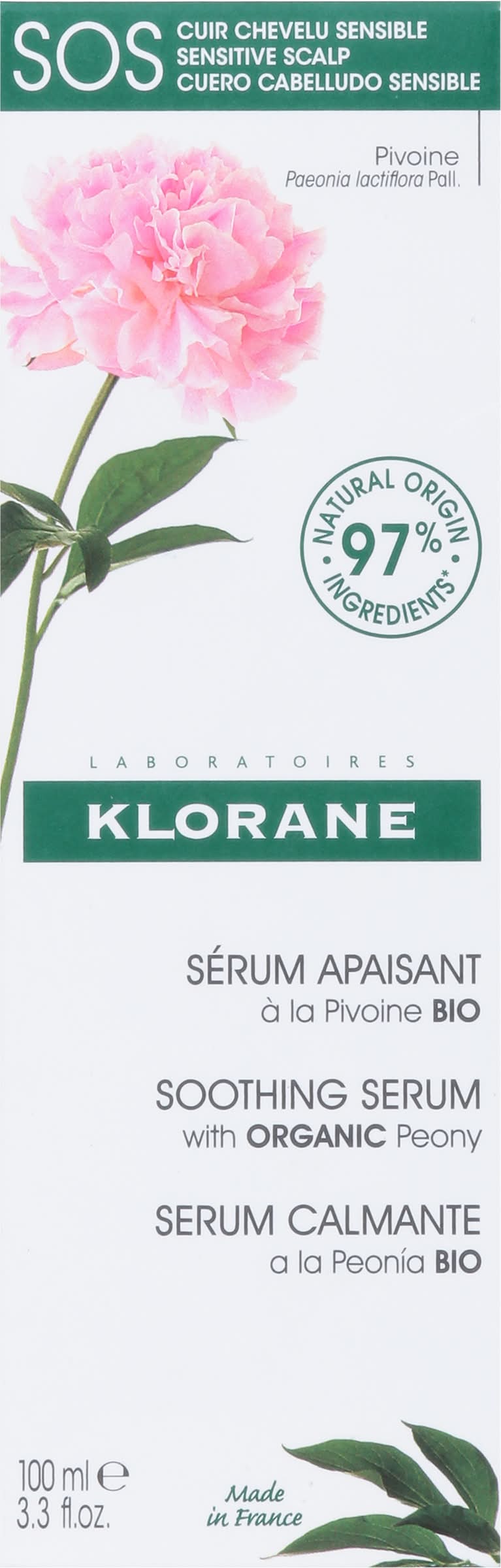 Klorane Sos Soothing Serum With Organic Peony, Peony (3.3 fl oz)