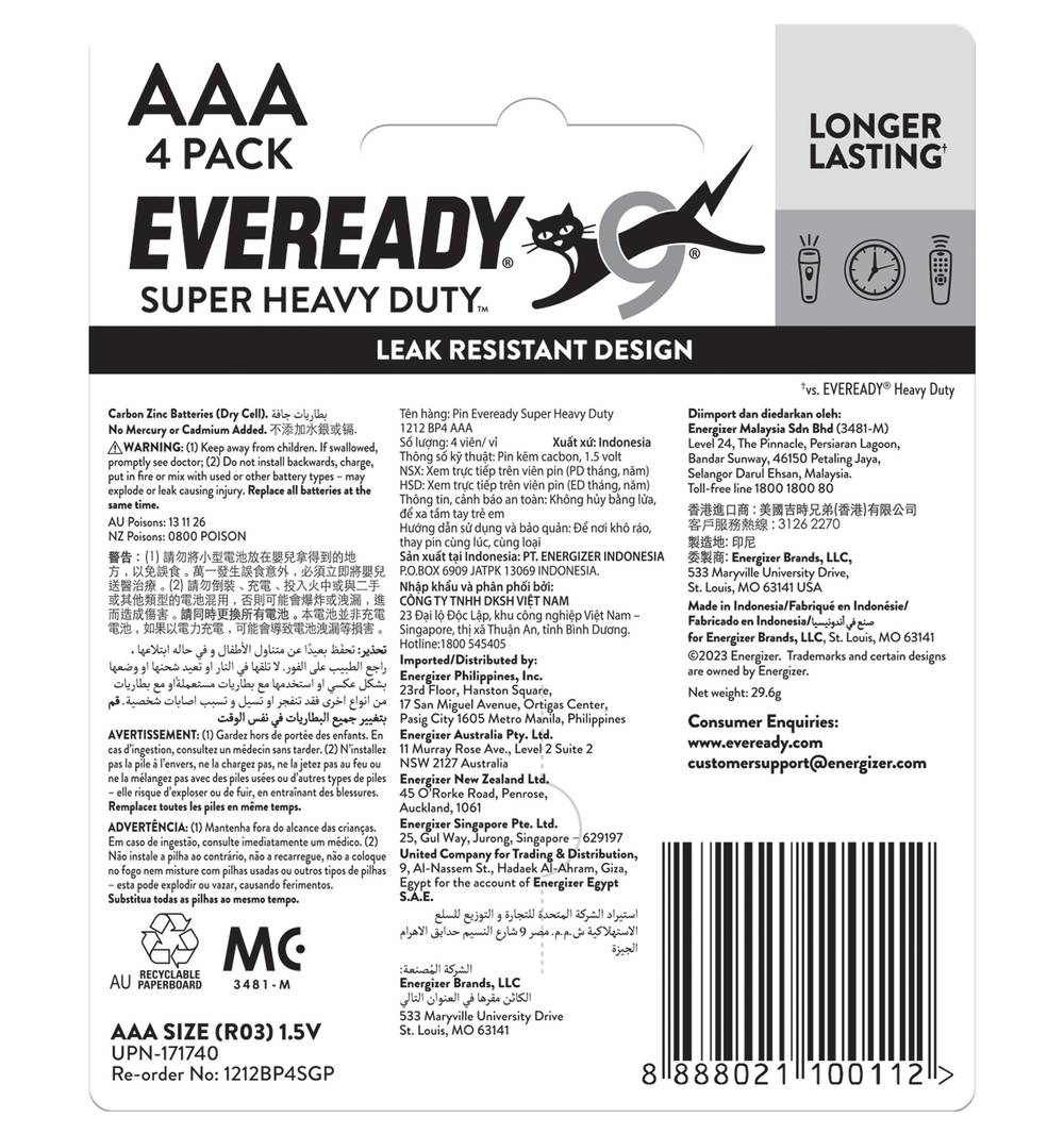 Eveready Super Heavy Duty Aaa Battery (48g, 4 pack)