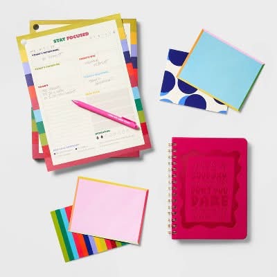 Make note-taking fun and easy with this Ruled 192-Sheet Spiral Notebook from Tabitha Brown for Target. This spiral notebook features a hard magenta cover with the caption "Have A Good Day, But If You Can't, Don't You Dare Go Messing Up Nobody Else's." Designed with lined, college-ruled pages and gold-tone spiral binding, it's sure to be your new favorite notebook. Tabitha Brown brightens days like no other. The actress, vegan, social media phenomenon and Target partner brings the world vibrance, candor and joy, every day. Punctuated by burst of color and thoughtful designs, her collection brings joy to work and home.