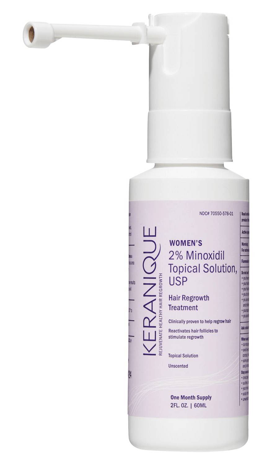 Keranique Hair Regrowth Treatment Easy Precision Sprayer is a hair treatment featuring 2% minoxidil, the only FDA-approved ingredient clinically proven to help women regrow hair. The patented easy-to-use sprayer allows for optimum precision to target areas of concern on the scalp.
