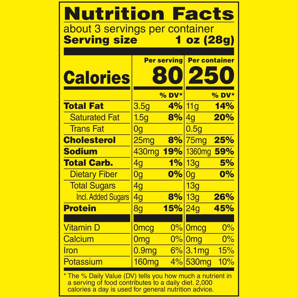 Tame that wild, carnivorous appetite with the Smokin’ Mesquite flavor of Slim Jim Steakhouse Beef Steak Strips. These tasty steak strips are made from thick, tender cuts of 100% beef for the ultimate beef jerky-style snack. Each meat snacks serving is loaded with 8 grams of protein, ideal for protein snacks that kick hunger to the curb and leave you feeling satisfied. This meat snack also fits a low carb lifestyle with 4 grams net carbs per serving (4g total carbs minus 0g dietary fiber). The resealable bag of Slim Jim Steakhouse Beef Steak Strips individual snacks allows you to bring the smoky flavor with you for work or school snacks and for on-the-go travel snacks. Slim Jim keeps it interesting with a full line of beef sticks, snack sticks, pork rinds and jerky. Snap into a Slim Jim®! Conagra Brands, Chicago, IL, 60654, Ph: 800-242-6200