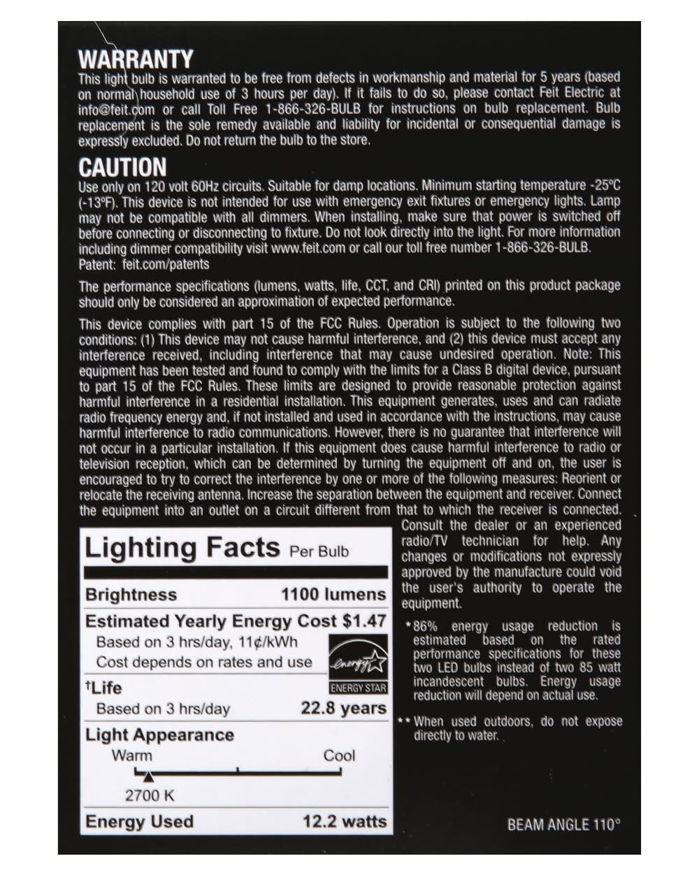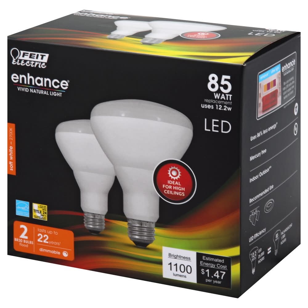 Light Bulbs, LED, Flood, Soft White, 12.2 watts, 2 Pack FEIT ELECTRIC,