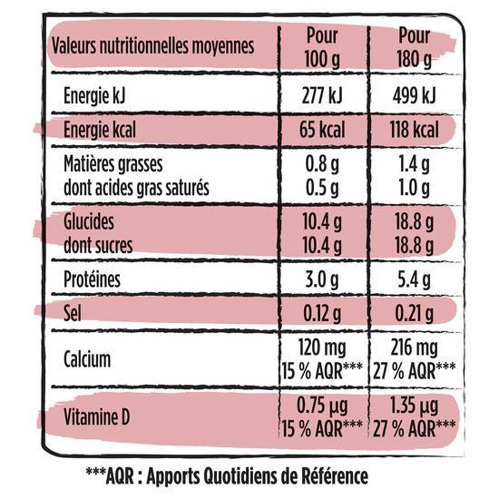 Yaourt (LAIT), Sucre 7.8% - Arôme naturel - Concentré des minéraux du LAIT- Vitamine D. LAIT D'ORIGINE FRANCE Contains: LAIT Additives: None