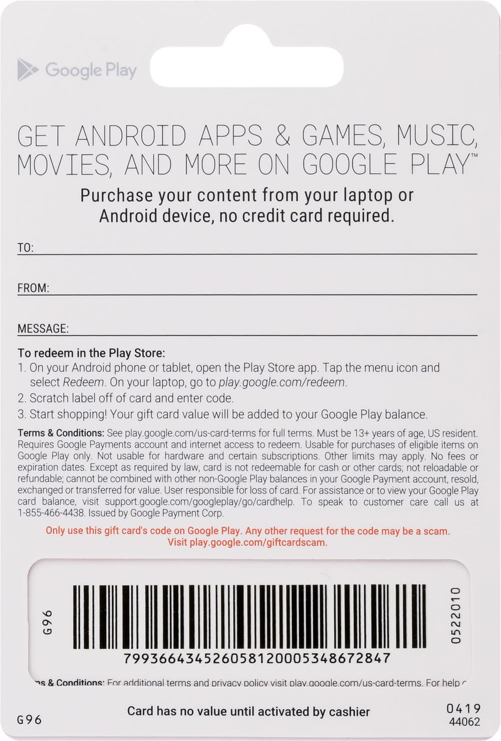 To find Google Play Gift Card nearby, use the Uber Eats search bar to browse local merchants. Once you find a store that carries it, just add it to your cart and proceed to checkout.