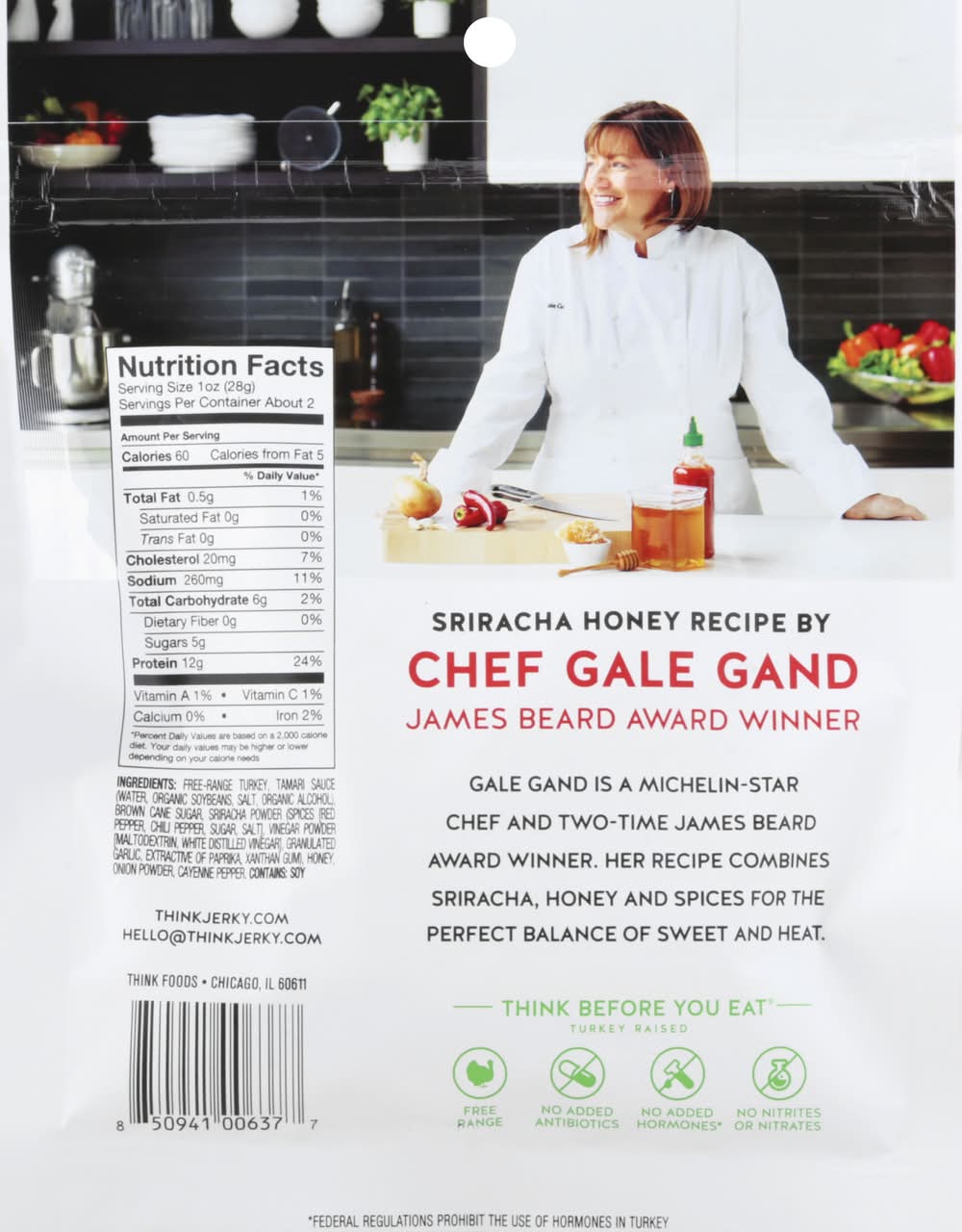 Think Jerky Free-Range Turkey Jerky, Sriracha Honey (2.2 oz)