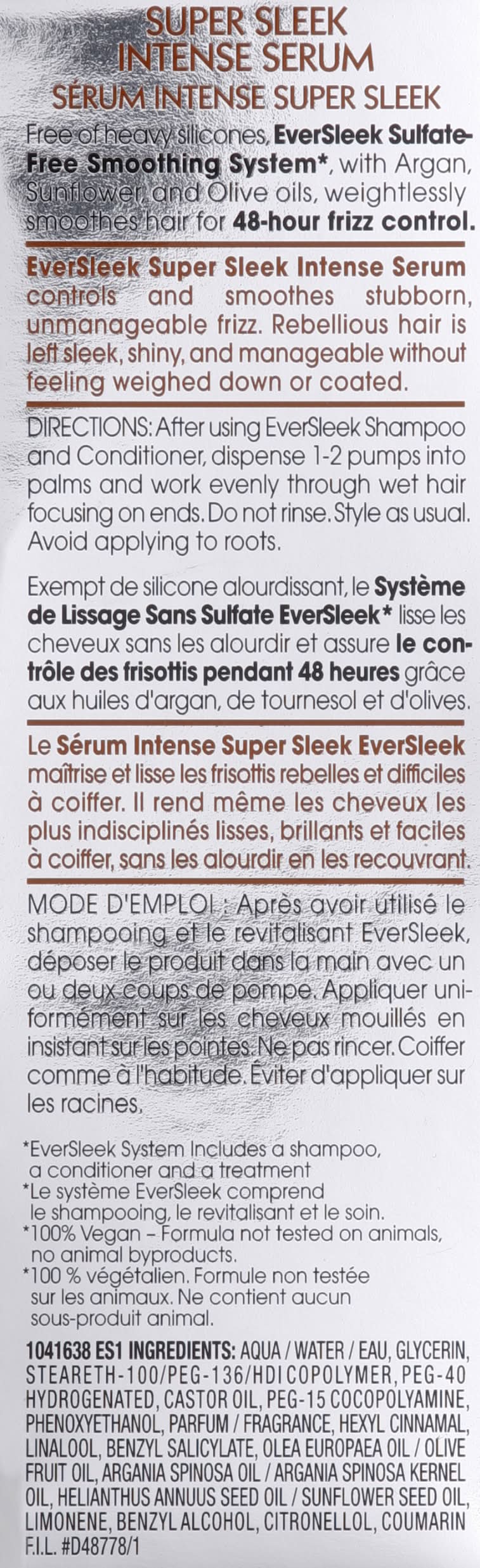 Directions: After using EverSleek Shampoo and Conditioner, dispense 1-2 pumps into palms and work evenly through wet hair focusing on ends. Do not rinse. Style as usual. Avoid applying to roots.