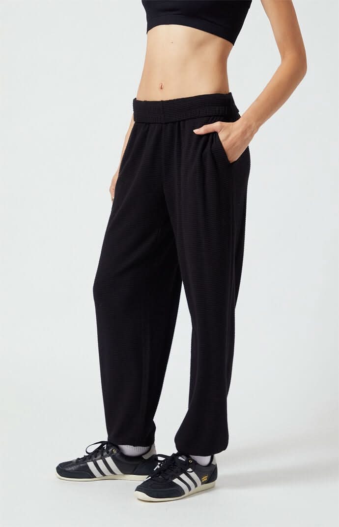 PAC 1980 Active Seasider Aspen Waffle Knit Sweatpants, Women, M, Black